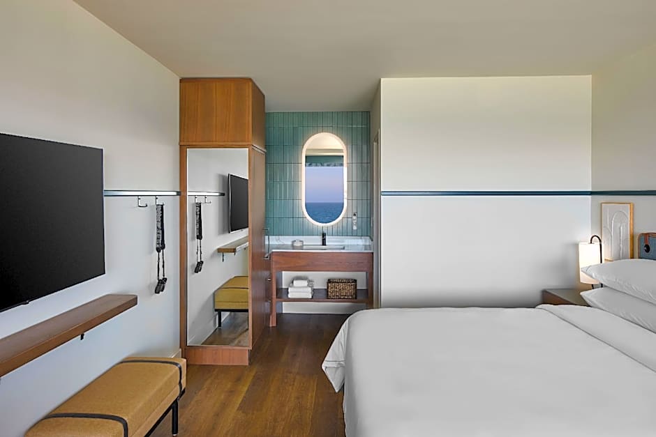 Featuring an ocean view and free WiFi, this room includes air conditioning and heating, a flat-screen TV with cable channels, an electronics charging station, a coffee machine, and a refrigerator. The private bathroom includes a hairdryer and free toiletries.
